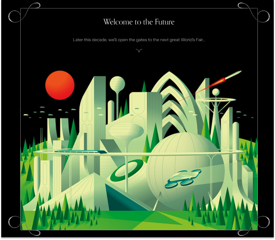 纽约世界博览会委员会希望这次活动不是遥远的未来,而是一个现实的、明确的乐观愿景:“1939年纽约世界博览会的主要目的是展示当今的工具,美国正准备用这些工具建设一个更美好的未来。”,它提供了对 "可用的未来"以及在灾难面前的希望、可能性和活力的探索。