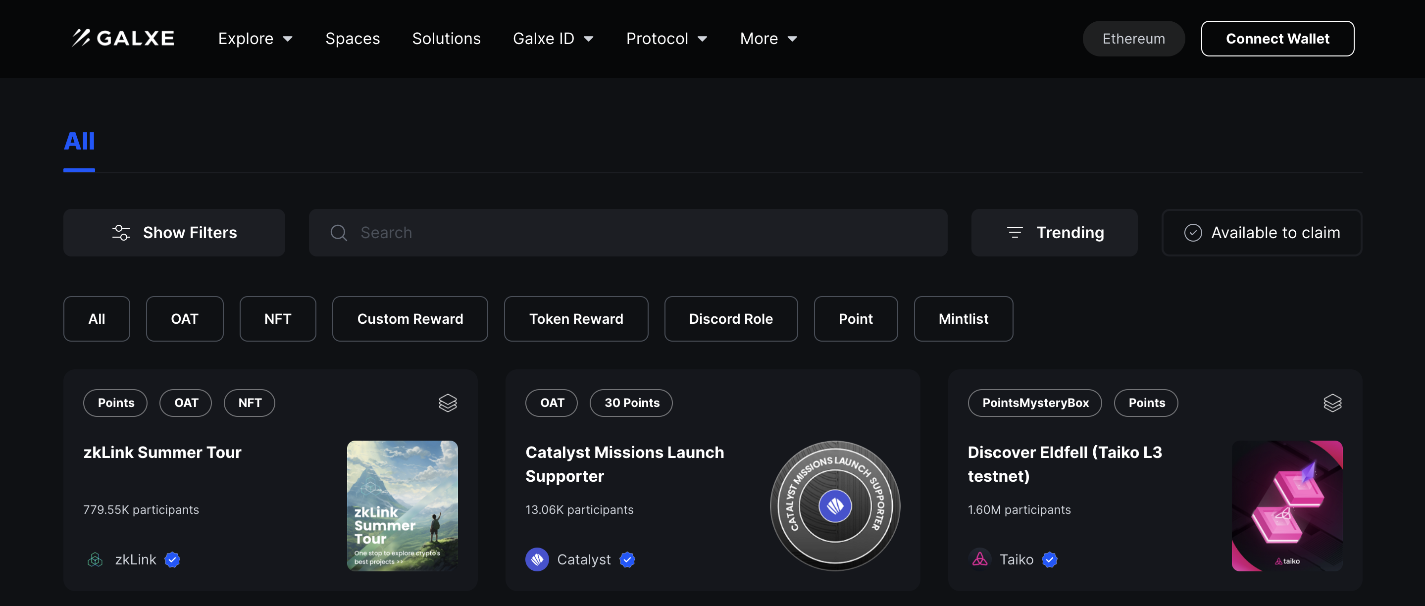 用户可以通过任务获得的NFT及OAT(链上成就代币)、以及链上凭证信息,这些凭证可以构建个人的“Web3履历”外,还可用于某些活动的参与权益,如项目的空投、白名单......