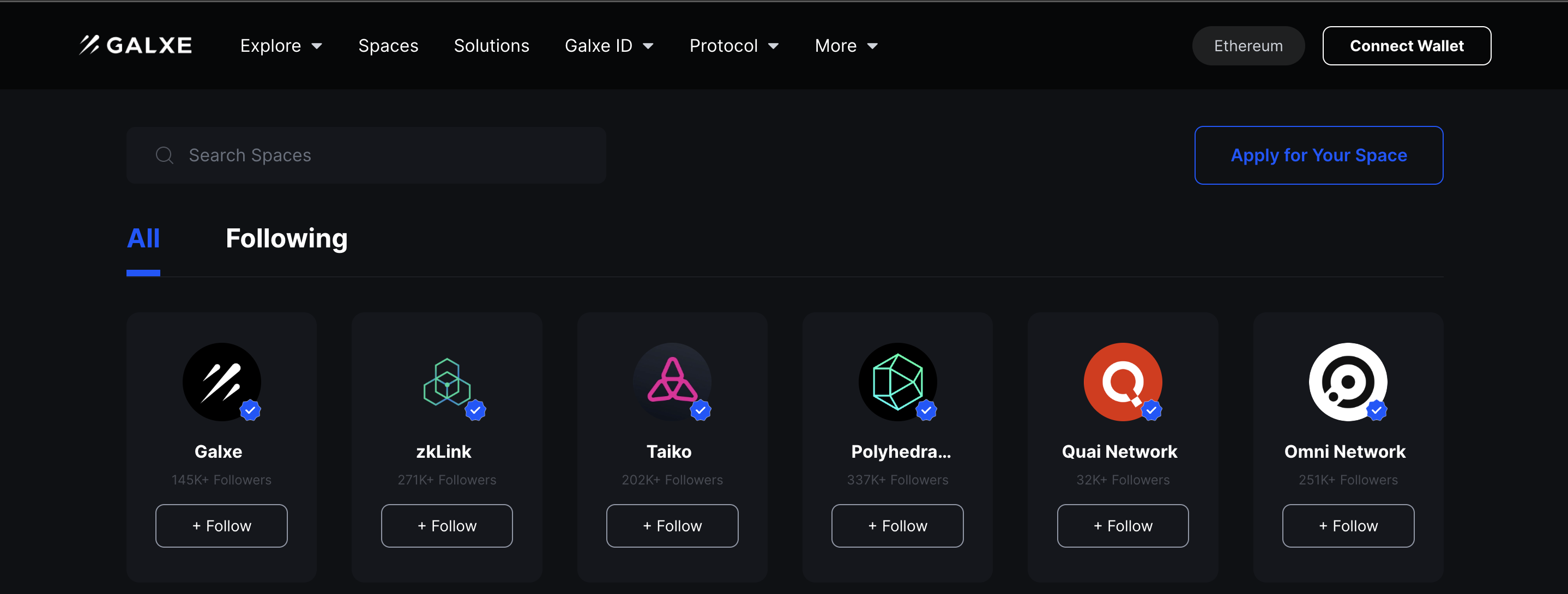 Galxe的space界面包含了各个项目方。平台会审核发布任务的项目,主页也会具体注明投资机构以及赛道,而QuestN是无需任何审核即可发布任务的。