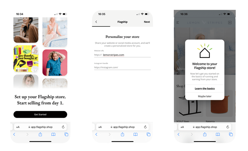 对于创作者来说,入门非常简单:Flagship有一个人工智能引擎,利用创作者的数字足迹生成与他们的视觉身份相匹配的在线店面。