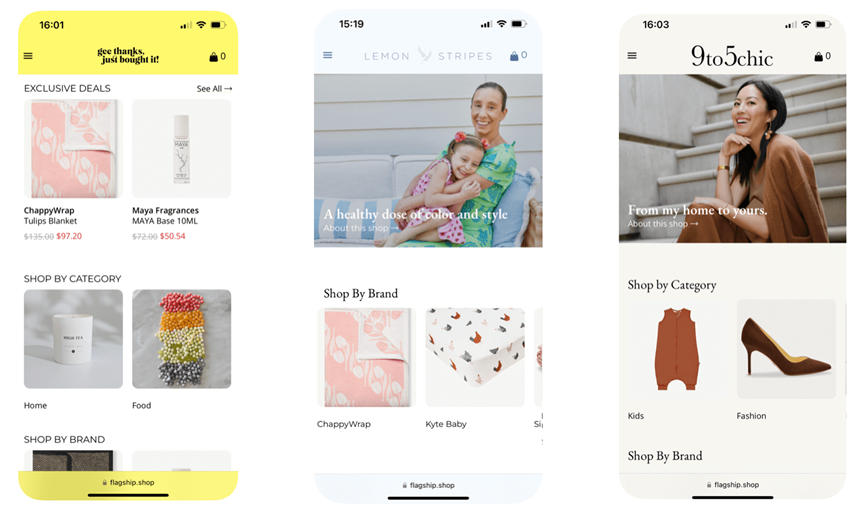 你可以在这里看到在Flagship上构建的精品店的例子——Caroline Moss的“Gee Thanks, Just Bought It”、Julia Dzafic的“Lemon Stripes”和Anh Sundstrom的“9to5chic”: