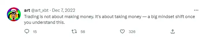 今天我要开始一个采访系列,采访的对象是我在 Crypto 领域发现的有趣的人。这个系列的第一位采访对象是我去年在 Twitter 上发现的 Crypto 交易者 @art_xbt。他会对自己的交易进行深刻反思和并进行月度总结,我感觉大为受用。举个例子,看看他发布的这篇推文中的 7 条反思就知道了。