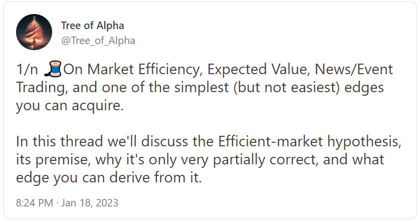 但我读了@tree_of_alpha的一篇文章,再次提醒我,如果你想在加密货币领域占据优势,效率是多么重要。