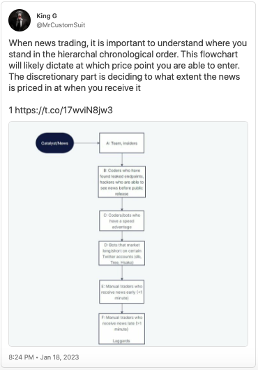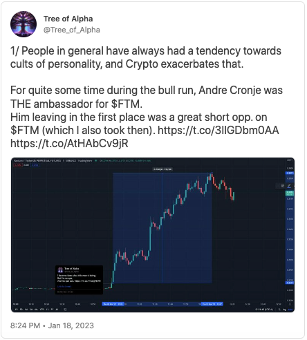 你可以交易股票、外汇、大宗商品、加密货币等。最近我发现了加密货币的优势,因为你可以利用效率低的优势。例如,当Andre Cronje的消息在Twitter上传出,他想专注于DeFi之外的其他事情时(2022年3月),至少过了10-15分钟,$FTM、$YFI等才开始下跌。现在回想起来,这是我在Fantom上所做的最容易的短线之一。对我来说,这是一次剥头皮的空头,但看看市场的结局有多糟糕,我也许应该再持有几个月。我的观点是,加密货币的效率不像股票市场一样。当股票市场传出消息时,在几秒钟后的价格中就能看出反映了。