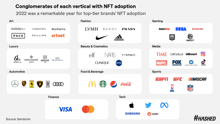 在2023年,中小型品牌和个人创作者将接受NFT作为提高和保持客户忠诚度的手段,这与上一年大型企业使用NFT的领先地位相呼应。这包括将NFT纳入现实社会社区的会员和忠诚度计划,如当地餐馆和社会活动。NFT带来的实际好处,如在线下活动中提供独家优惠,将促进NFT的广泛采用。