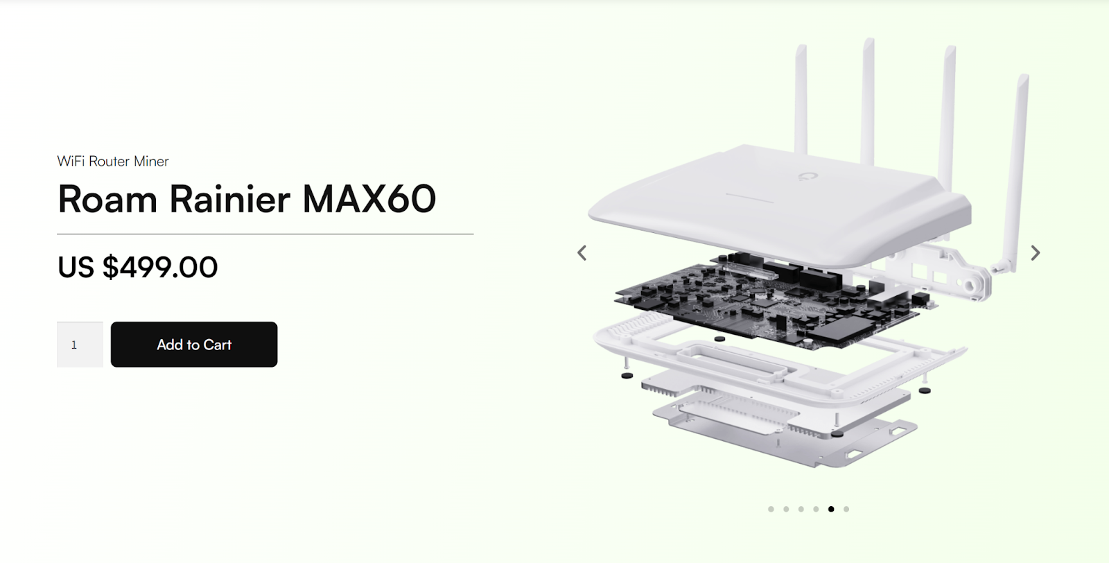 与传统路由器做区分,Roam Rainier MAX60 挖矿性能是其最大的亮点,用户在激活、使用的同时会获得Roam积分即Roam Points,并且还将支持双挖/多挖功能以及其他项目的空投奖励,这一措施不仅增加了用户的数字资产储备,还为他们带来了潜在的额外收益,提升了Roam矿机的经济回报。