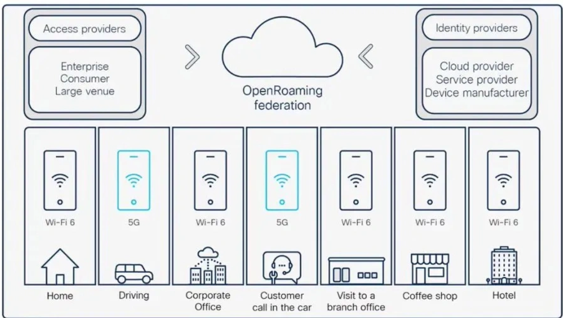 Roam使用的核心技术包括Passpoint和OpenRoaming™。Passpoint是Wi-Fi联盟在2012年开发的WiFi认证和漫游技术,简化了用户连接公共WiFi网络的过程,提升了连接的安全性和可靠性。它允许设备自动发现并连接到WiFi网络,无需用户干预,使用WPA2-Enterprise加密和EAP提供强大的安全认证机制,确保用户数据的安全传输。Passpoint还支持设备在不同的WiFi网络之间无缝切换,不需要重新认证,实现自动连接。OpenRoaming™是由无线宽带联盟(WBA)发起的全球性网络联盟,通过连接接入提供商和身份提供商,为移动用户提供顺畅的WiFi接入。结合Passpoint和OpenRoaming™技术,Roam建立了一个统一标准的WiFi联盟网络,使用户设备在任何支持OpenRoaming™的地方都能自动上网,无需任何操作,提供像使用4G/5G一样便捷的WiFi连接体验。