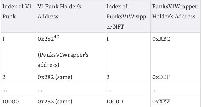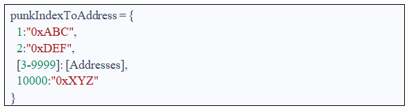 这个punkIndexToAddress变量可以转化为一个说明性的查询表,使分析更加直观: