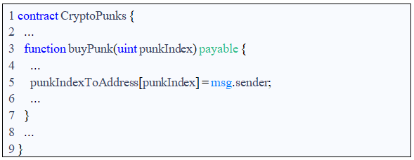 为了说明这一点,我们转向管理迄今为止最受欢迎的NFT项目之一的CryptoPunks的智能合约。CryptoPunks是一系列10,000个代币化的个人资料图片(“PFP”)的艺术资产,购买者经常将其与在线身份(如Twitter的头像)联系起来使用。自CryptoPunks成功以来,其他PFP NFT(通常是10,000个系列)的发行已经成为一种流行趋势,因此,研究CryptoPunks智能合约可以作为一个常见用例的有用说明。