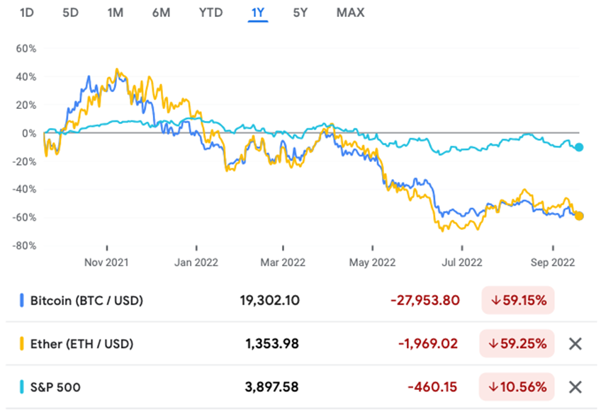 有人认为加密货币被设计用于取代传统货币,但只有其中一小部分适合这一目的。正如下图所示,比特币和以太币的波动性远远超过标普500指数,这几乎无法证明它们是安全的价值储藏品(尤其考虑到它们是最大且相对稳定的投机性代币)。