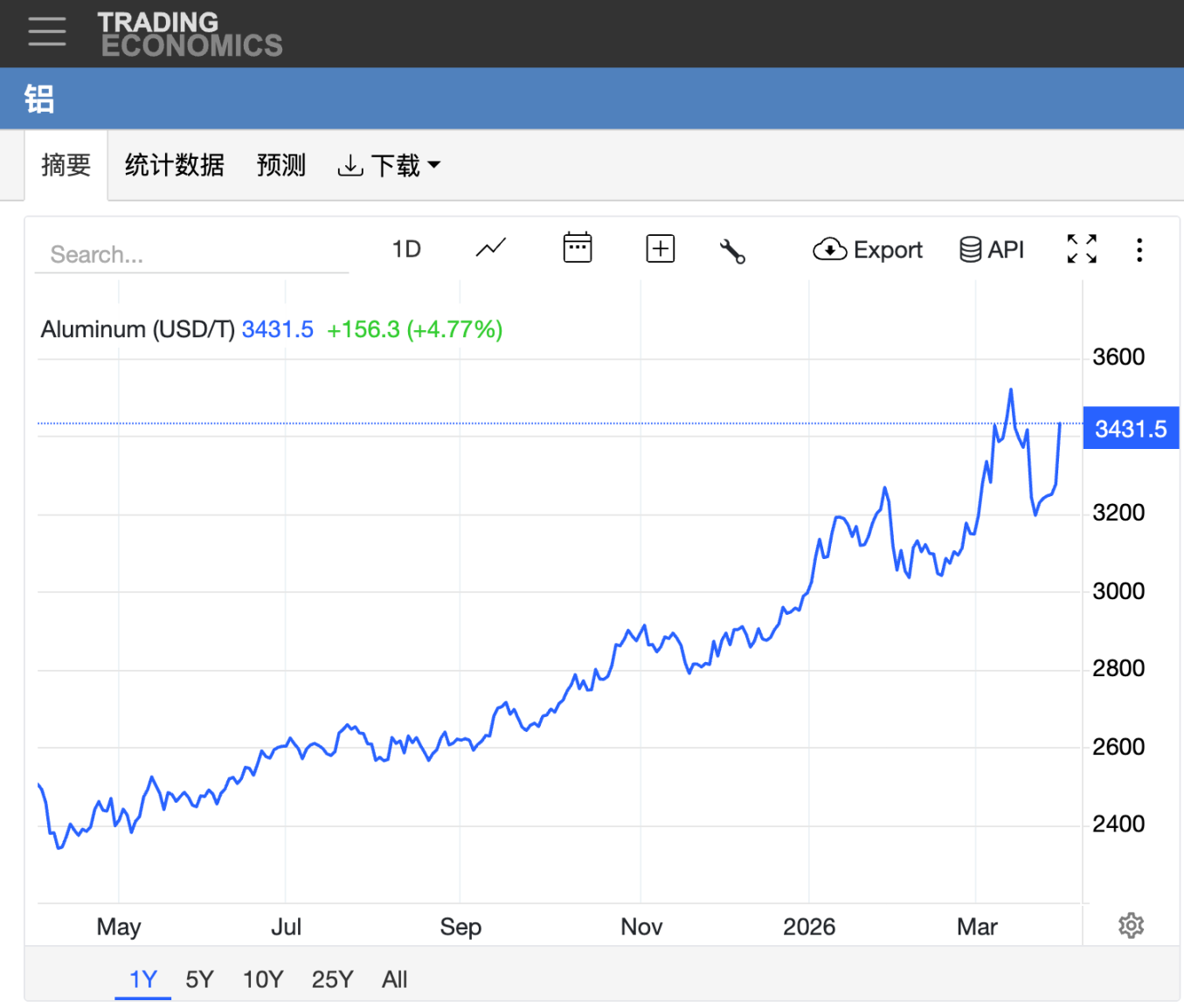 花旗银行分析师预测,如果供应继续恶化,铝价可能从目前的约 3300 美元涨到 4000 美元一吨。
