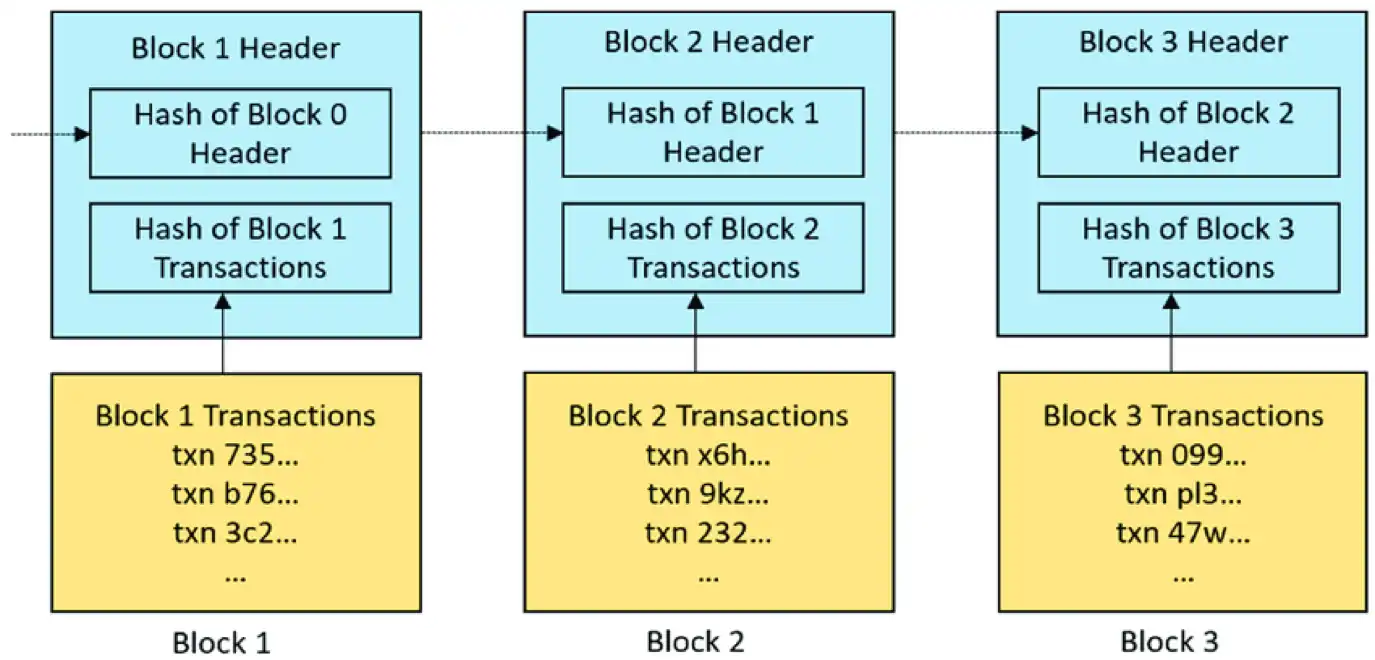 区块是区块链的组成部分,单个块由两个组件组成:block headre block body,header 包含前一个区块的哈希、timestamp 等数据,body 包含该区块中的所有交易。