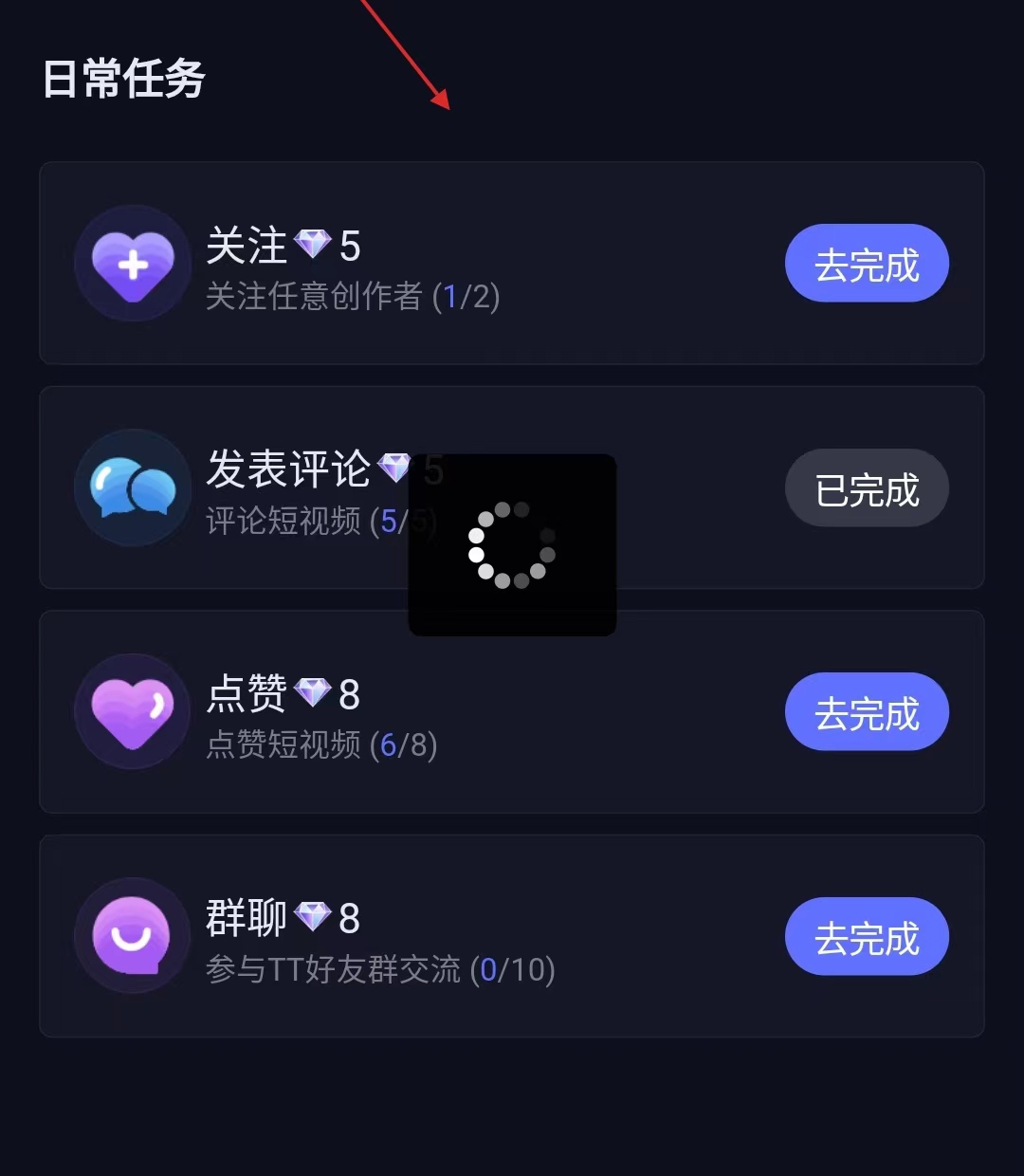 第四步邀请朋友和做任务获得钻石