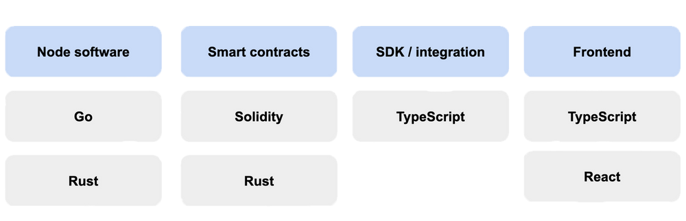 金融和数据研究活动与区块链、链上分析和去中心化金融(DeFi)重叠。交易与集中交易所(CEX)和分散交易所(DEX)重叠。这些活动至关重要,但往往不是软件开发中更为用户可见的元素的一部分,例如Web前端(以基于JavaScript的工具为主)或区块链核心(以Go和Rust为主)。