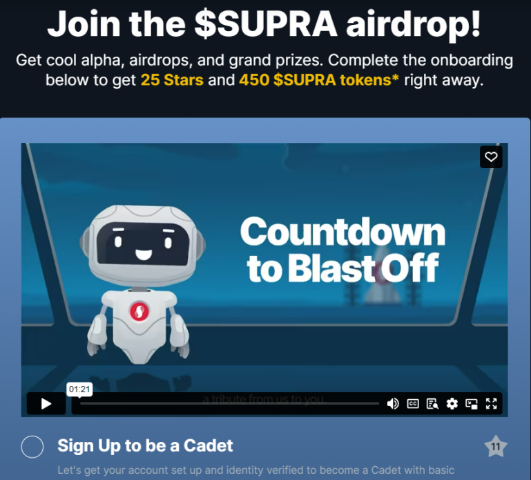 Supra 正通过「Countdown to Blast Off(倒计时冲刺)」活动进行代币空投计划,总量高达 4 亿枚 $SUPRA 代币。该计划采用「learn to earn」的社交化游戏模式,玩家通过完成任务学习 Supra 最新动态,同时有机会免费获得 $SUPRA。到目前为止,共有近 24 万名社区成员参与其中,互动性极高。Supra 之所以采用这种学习赚模式进行空投,是为了以有趣游戏方式驱动社区产生学习互动,通过学习减少新手自然门槛,为用户提供可玩性体验。同时,空投也是 Supra 奖励和 结合社区的方式,这将有效促进社区日益活跃和壮大。目前,Supra 空投计划已深受社区欢迎,不仅可以学习产品,也可以直接获得 $SUPRA,对于新老用户来说均是双赢的互动计划。