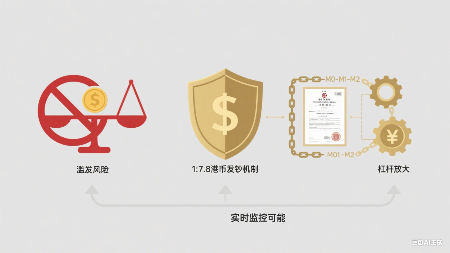 稳定币发行商会希望自身承担最小成本而获取最大规模的稳定币发行量及应用。他们可能会想,凭什么央行可以印钞票,我是不是也可以?如今,他们通过稳定币也能有印钞功能,但因为缺乏对货币政策、宏观经济调控、公共基础设施职能等方面的深入了解和责任感,有可能缺乏足够的自律性,可能引发发行量失控、高杠杆和不稳定。(1)稳定币稳定与否不是自称的,需要有判定机制。目前央行对其的担忧至少有两点。一是“滥发货币”,即发行方在缺乏真实100%准备金的情况下发行稳定币,也就是超发;二是出现高杠杆放大,即发行后的运转会产生货币派生的乘数放大效应。对此,美国的《天才法案》(GENIUS)以及香港的《稳定币条例》都已有所关注,但控制力仍存在明显不足。首先,应明确发行准备金的托管机构是谁,实践中存在托管人不尽职的情况,这在过去已有诸多案例。2019年,脸书最初计划是自行托管Libra的发行准备资产,自主性强且可以保有托管资产的收益。但准备金托管必须是一种可靠的托管,应该是央行或者央行认可并监管的托管,否则就不太可靠。(2)其次,如何测量和管理稳定币运转中的放大效应?即便发行方放置100%的准备金,稳定币仍会在后续运转环节(如存贷、抵押、交易与重新估值等)出现乘数效应,需应对的可能挤兑量会数倍于发行准备金。表面上看有关法规会阻止放大,但深入观察货币发行与运转的规律后可知,现有规则远不足以应对派生与放大。可以借鉴香港三家商业机构发行港币现钞的例子:香港三家发钞行的发钞机制是,每发行7.8港元就需要向香港金融管理局缴纳1美元作为准备金,同时获得一份负债证明书。(3)在港币现钞M0的基础上,经济金融系统通过派生、乘数效应产生出M1、M2。在挤兑情况下,不仅会针对M0,也会针对M1或M2,即使基础货币M0有百分之百备付金准备,也无法依靠M0准备金去应对挤兑并保持货币稳定。稳定币的放大效应有三个可知的典型渠道:一是存贷渠道;二是抵押融资渠道;三是资产市场交易(可额外购入或重估发行准备资产)渠道。所以需要由监管者对已发行稳定币的实际流通量进行统计和测算,否则无法确知可能的兑付风险规模。稳定币的放大乘数效应还会给舞弊及操纵市场提供机会。(4)