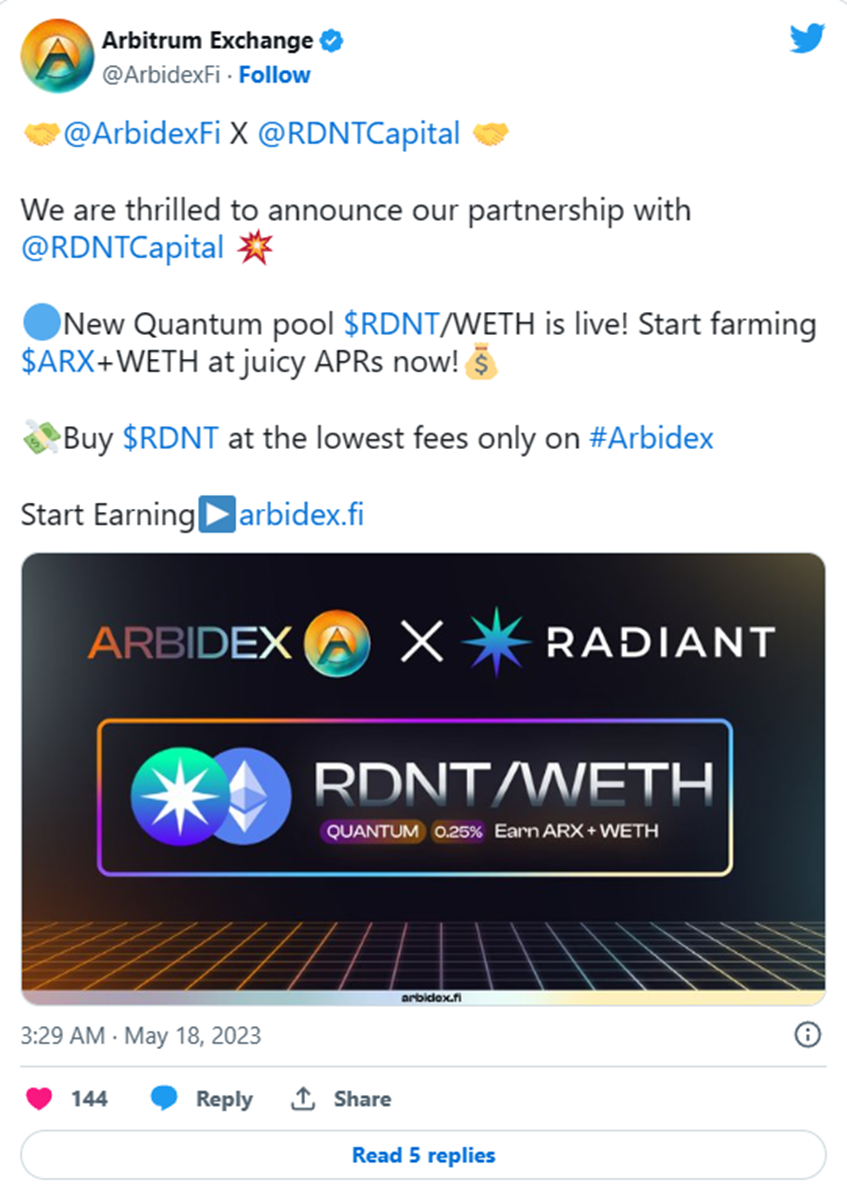 即使在熊市中,Radiant Capital及其充满活力的社区也在各个平台上展现了持续的活动,包括积极参与社交媒体渠道和参与治理论坛。