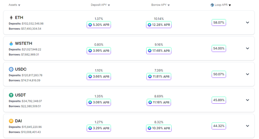 值得注意的是,Radiant Capital目前的激励超过了借款费用,使用户能够探索“循环”策略或杠杆式收益农场。