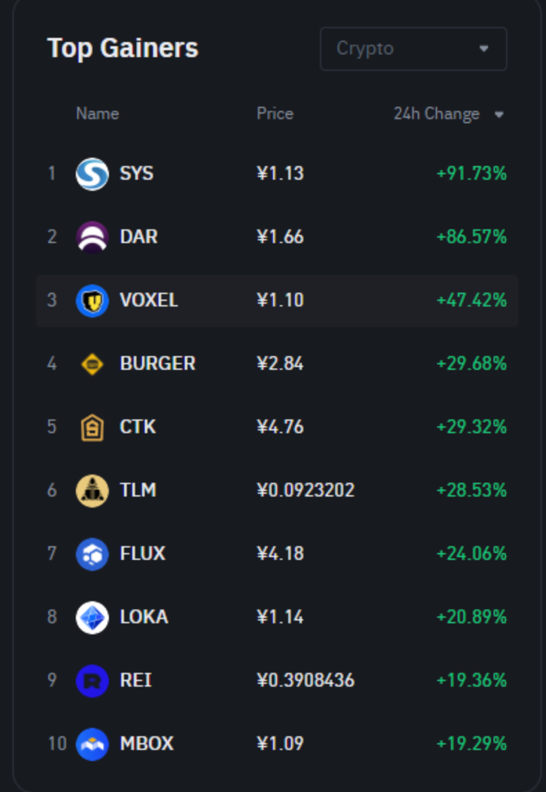 今日,币安的交易数据排行榜上有点“不同”,涨幅榜上出现的不是以往常见的大币,而是一些年代久远的小币,可以说今天的币安是“小币乱飞”的一天。