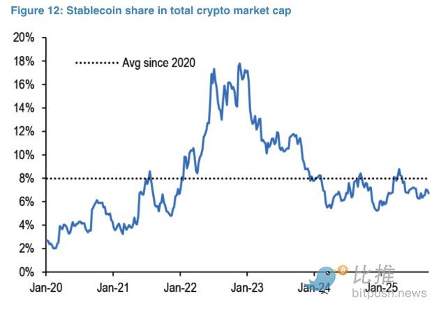 尽管 Tether 凭借其规模和盈利能力傲视群雄,但稳定币赛道的竞争正空前激烈。摩根大通分析师的报告指出,稳定币总市值与整体加密市场市值增长趋同,意味着这是一场「零和游戏」——发行方的主要任务是争夺市场份额,而非扩大整个蛋糕。