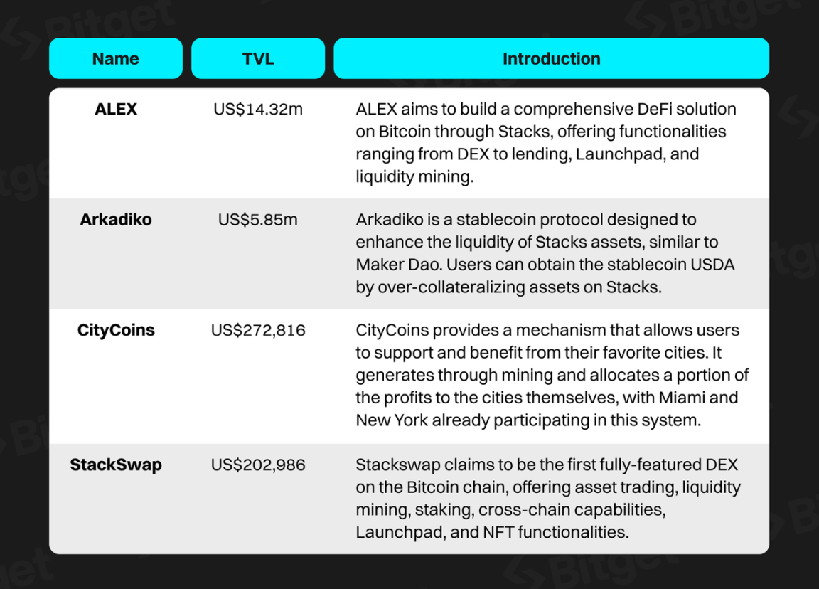 - 比特币 Layer2 Stacks 生态内存在一些低市值项目,如 ALEX、Arkadiko 等都已发币,如果比特币 Layer2 接下来有快速的发展、蓬勃的资金涌入,早期上线这些低市值代币可以抢占先机,让用户获得巨大的财富效应