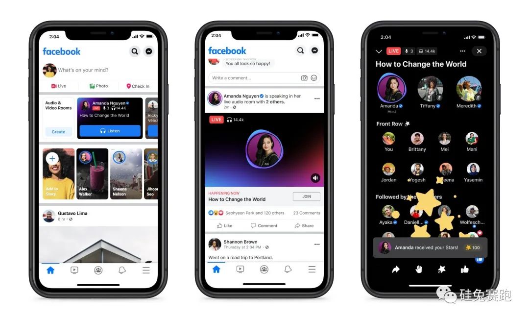 Facebook在2021年6月推出了Facebook Live Audio Rooms,公众人物和内容创作者可以发起语音聊天,任何用户都可以收听,甚至有网友调侃,小扎此前在Clubhouse聊天室的出现就是来”偷师”的。