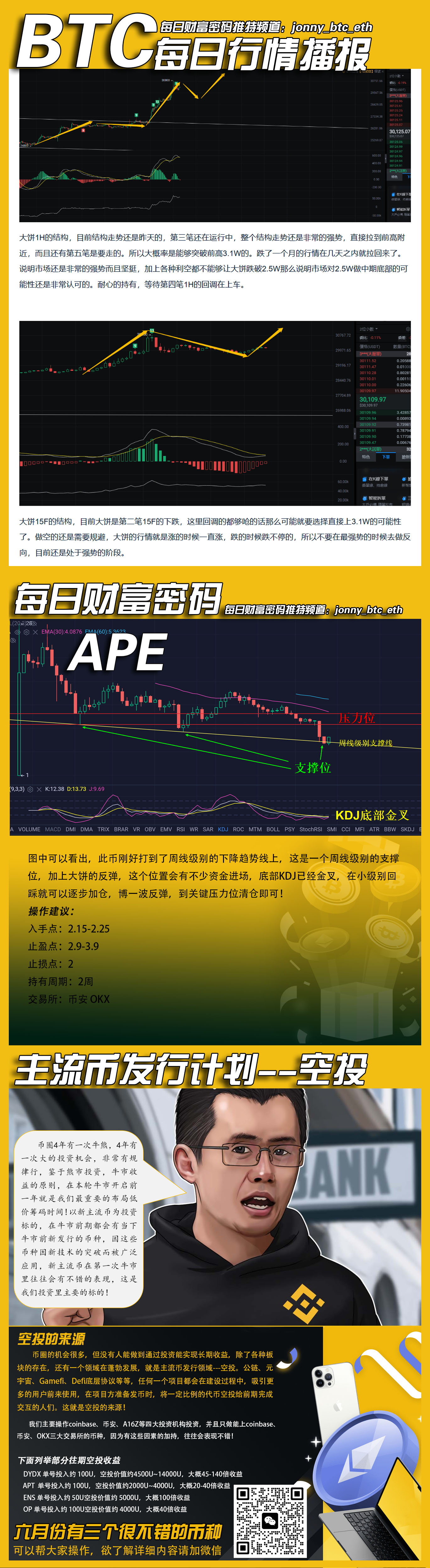 大饼在日线已经完成了次顶动作!一夜拉回30800附近!接下来的重点关注能否突破31000并且站稳31000!站稳了3100 0接下来就看32000-35000之间!那么山寨就对了大饼和老二横住!还是有机会的!我们重点操作的山寨就是二层和质押的代碧!