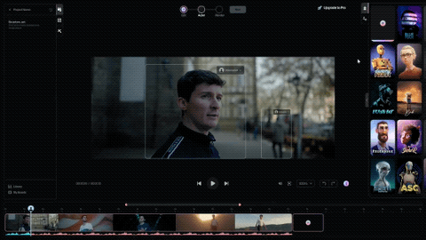 将MP4或MOV等格式的视频导入Wonder Studio,并选定需要处理的视频段落,拖入中间区域等待处理;