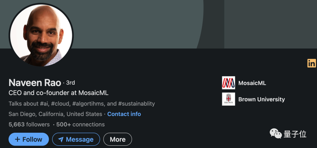 MosaicML由前英特尔AI芯片项目Nervana负责人Naveen Rao创办。