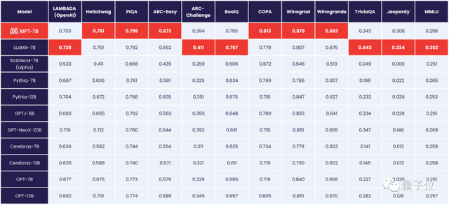 MosaicML推出MPT系列模型,其中70亿参数版在性能测试中与LLaMA打个平手。