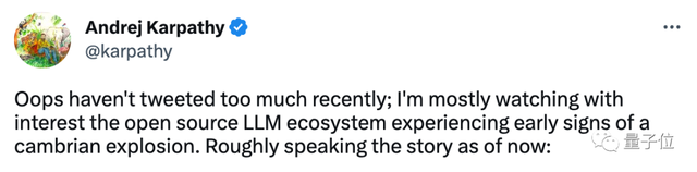 对于这些进展,特斯拉前AI主管Andrej Karpathy认为,开源大模型生态有了寒武纪大爆发的早期迹象。