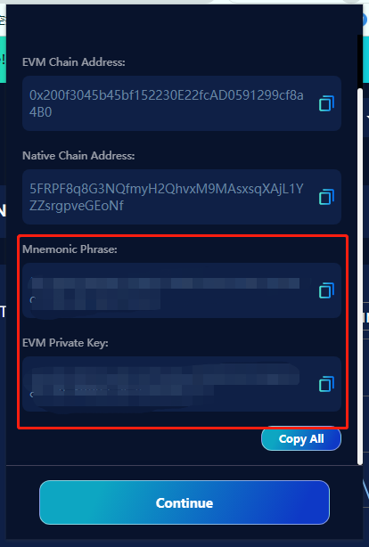 保存好助记词和私匙