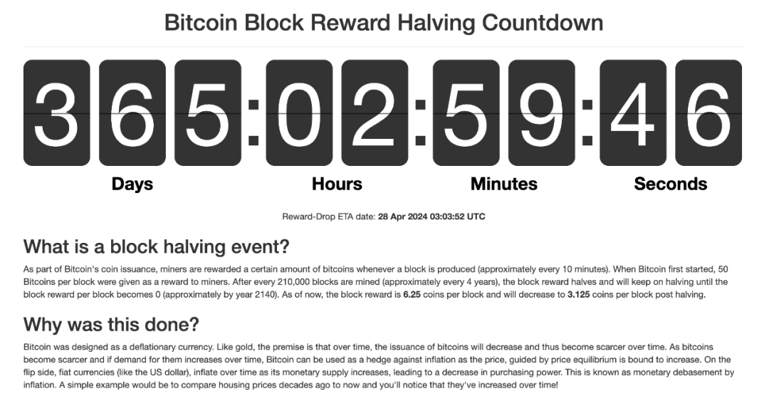 下一次减半大概率发生在明年的今天。确切的日期取决于矿工算力的增减,因为这会影响到发现区块的速度。在下一次减半之后,区块补贴将减少到 3.125 块大饼。