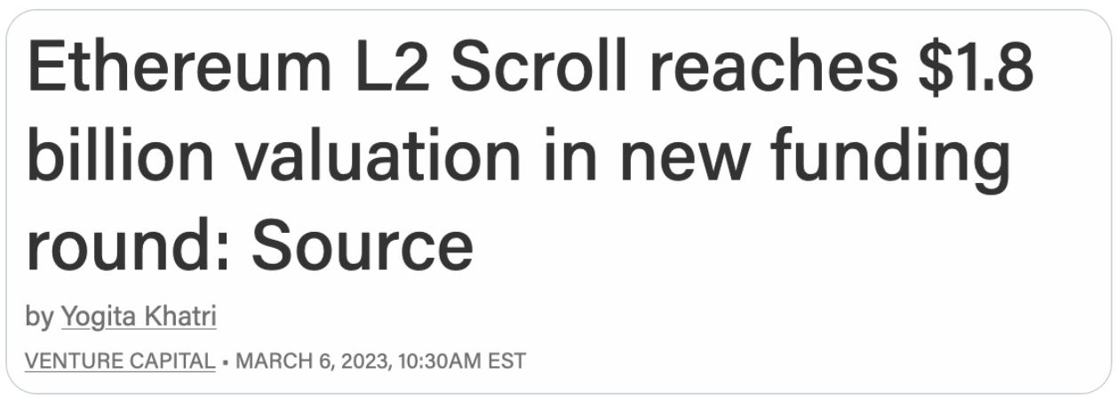 它是以太坊上的一种零知识Rollup,类似于Starknet和zkSync。Scroll已经获得了约8000万美元的资金支持。该笔资金由多位投资者提供,其中启明创投和Polychain是最近的投资者。其目前的估值为18亿美元。
