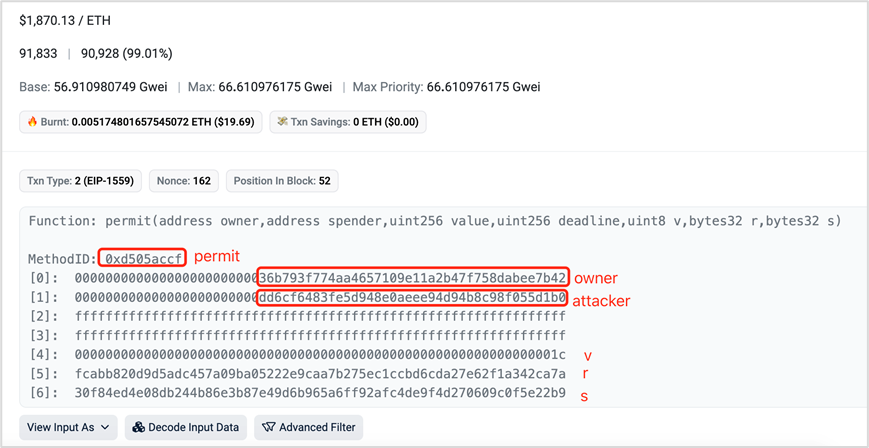 (3)攻击者调用Permit2合约的permit函数,完成授权。