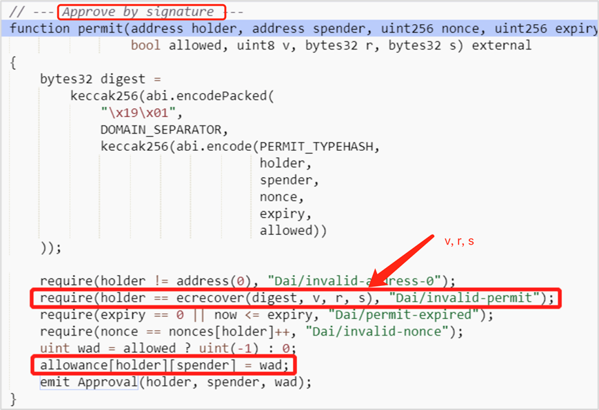 Permit是针对ERC-20标准下授权的一个扩展功能,简单来说就是你可以签名批准其他地址来挪动你的Token。其原理是你通过签名的方式表示被授权的地址可以通过这个签名来使用你的代币,然后被授权的地址拿着你的签名进行链上permit交互后就获取了调用授权并可以转走你的资产。Permit链下签名钓鱼通常分为三步: