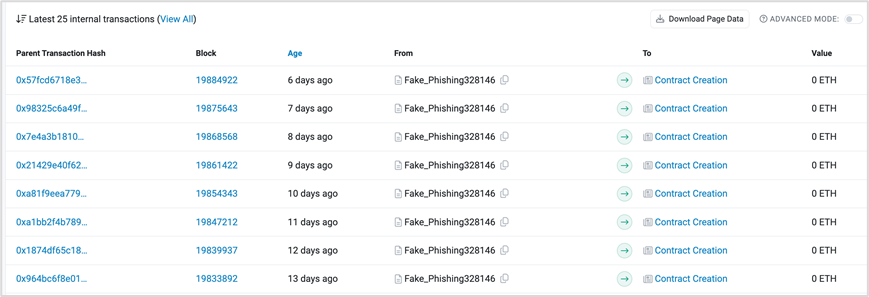 这里攻击者接收资产的地址通常有多个,通常其中一个金额最大的接收者是实施钓鱼的攻击者,另外的则是提供钓鱼即服务的黑产地址(钓鱼即服务DaaS的供应商地址,例如PinkDrainer、InfernoDrainer、AngelDrainer等)。