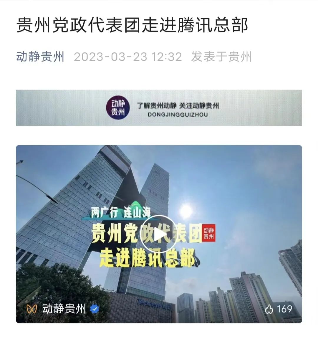 3月23日,马化腾与贵州省委书记见面的照片流出。这次“见面”,腾讯可是贵州省党政代表团广东省、广西壮族自治区学习考察的第一站;