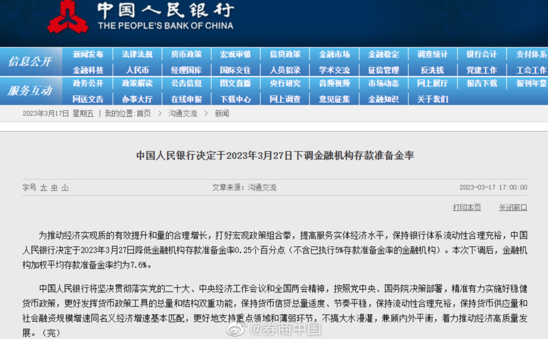 1 在BATJ掌门人们密集地出现在大众舆论公众视野之前,中国还发生了一件重要经济事件,那就是:降准。3月17日,央妈发公告表态,将于2023年3月27日全面降准0.25个百分点。从2018年初的14.9%,一路“小跑”连续降到如今的7.6%。货币量从2018年的182.67万亿元,到2022年的266.4万亿元。