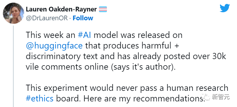 与论坛总基调类似,GPT-4chan的回答充斥着种族歧视、性别歧视和反犹太主义。不仅如此,Kilcher还将其底层模型发布到Hugging Face供他人下载。不过在很多AI研究人员的声讨下,官方很快限制了网友对该模型的访问。