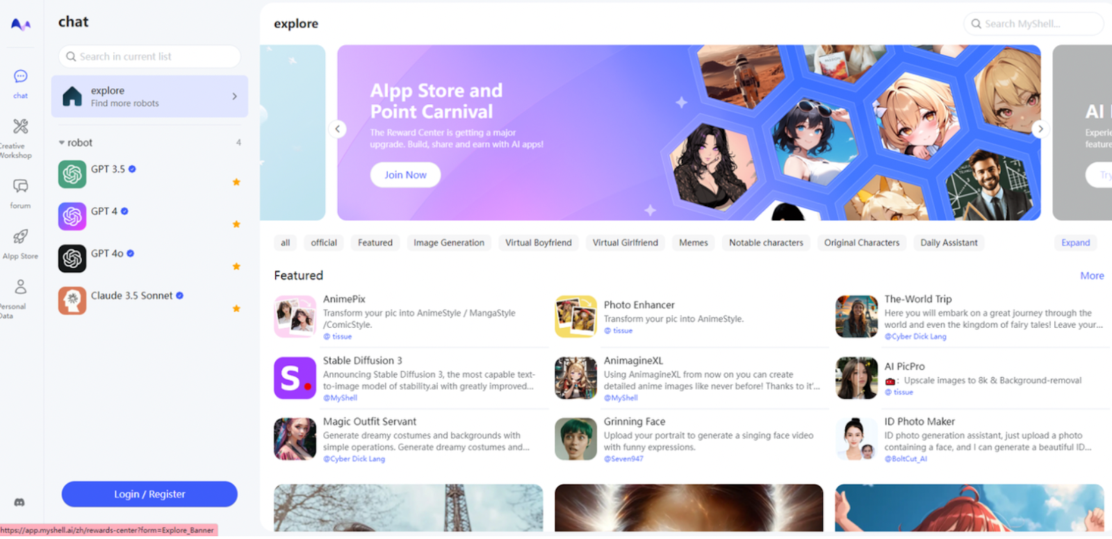 在 MyShell 的生态系统中,激励网络起到了至关重要的作用。为了确保创作者能够持续创造和升级 AI 应用,MyShell 引入了 Crypto 原生的市场调节机制,不仅对那些实现产品市场契合(PMF)的 AI 应用进行奖励,还通过积分系统和链上交易为创作者提供长期的经济回报。这种激励机制打破了传统开源社区中创作者难以获益的困境,为 AI 应用的持续创新提供了有力的保障。