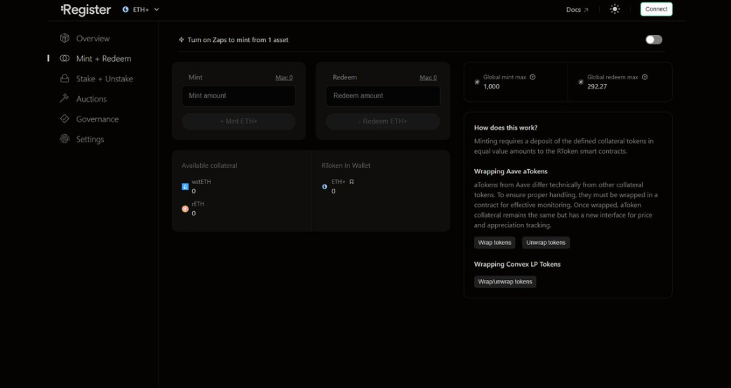 ETH+提供了一种名为"ETH LST 篮子"的资产组合。用户可以使用自己的 ETH 代币来铸造 ETH+ 代币,并将其添加到他们的数字钱包中持有和交易。