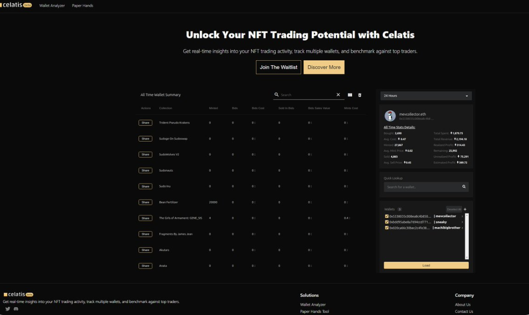Celatis主打的功能是它的钱包分析器,而除此之外,其还提供了一些额外的功能,比如“paper hands”,它将为用户显示其最频繁交易的代币以及潜在收益。
