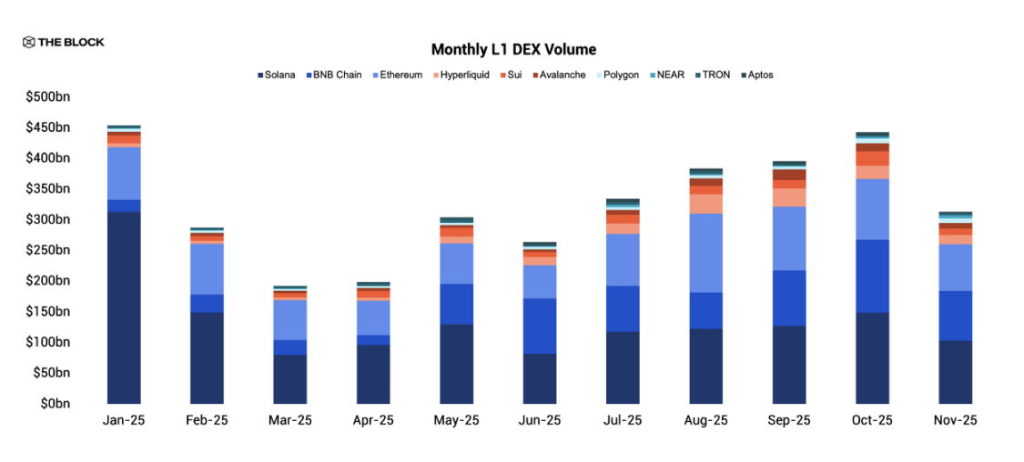 相关性的门槛在不断提高,但围绕少量网络的明确整合仍显得遥不可及。 相反,底层网络的格局正在进一步碎片化,形成以小众、专业化链为主的循环更替格局。Solana 专攻迷因币交易,以太坊坐稳结算层,稳定链处理支付,隐私链保护数据——每条链都有自己的「一亩三分地」。