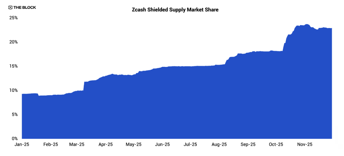 但 Zcash 却迎来了第二春。通过与 NEAR 协议的跨链技术整合,用户可以在透明交易和隐私交易之间自由切换。其隐私池的使用率从 9% 暴涨到 24%,证明了隐私功能在合规框架下的价值。