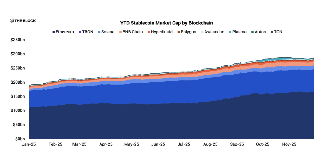 2025 年,稳定币用实力证明了自己是加密世界的「硬通货」。全年新增发行量高达 900 亿美元,总市值暴涨 45%,成为支撑整个加密生态的核心血液。这一波增长背后,离不开迷因币狂潮、永续合约的火爆,以及机构资金的涌入。