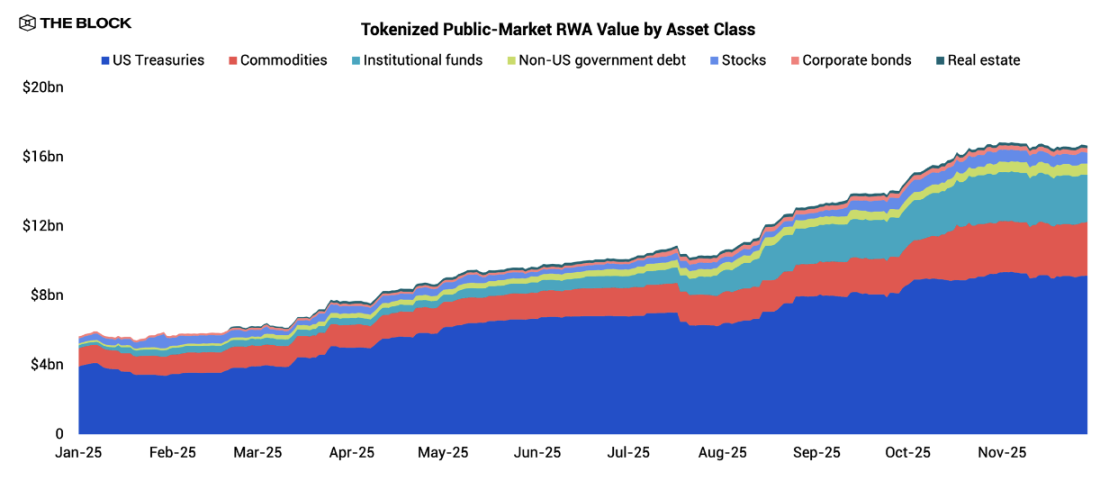 2025 年,现实世界资产(RWA)的代币化终于迎来了爆发式增长。经历了 2022 年流动性危机后的停滞期,这一市场在 2025 年重获动能,代币化的公共市场资产总值从 56 亿美元飙升至 167 亿美元,创下了自这一赛道诞生以来的最快增速。