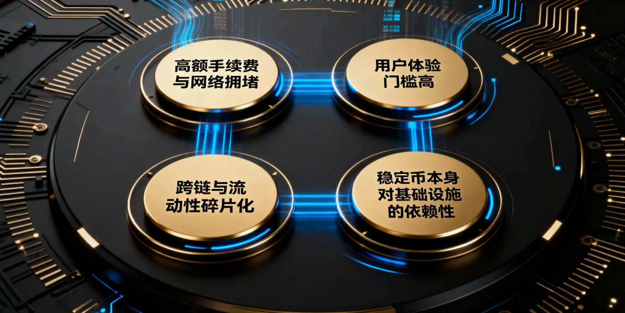 在当前的区块链生态中,DeFi 与稳定币虽然取得了巨大的发展,但也面临一些长期存在的痛点和瓶颈: