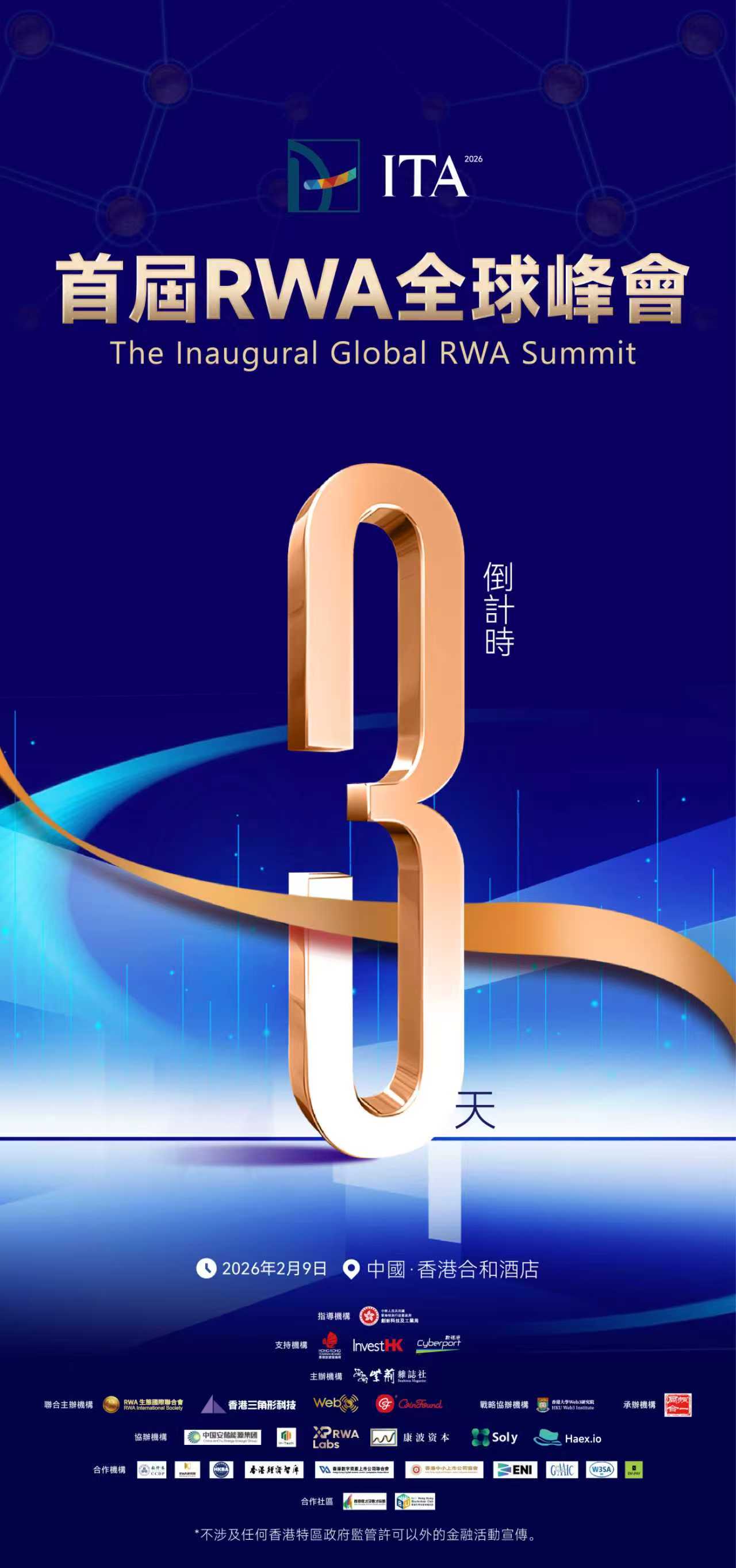 为探讨RWA(现实世界资产)前沿趋势,搭建政、经、产、学、研多方高端交流合作平台,紫荆杂志社联合RWA生态国际联合会、三角形科技(香港)有限公司、WebX全球数字控股集团、Coin Found等公司,将于2月9日在香港举办“ITA 2026 首届RWA全球峰会”。当下,RWA(现实世界资产)作为连接实体资产与数字金融的核心纽带,正开启万亿美元市场新赛道,香港凭借国际金融枢纽优势与Web3、RWA新政红利,成为全球资产数字化的核心聚集地。本次峰会将汇聚全球行业力量,共探资产数字化发展新路径,助力香港巩固国际创新金融枢纽地位。