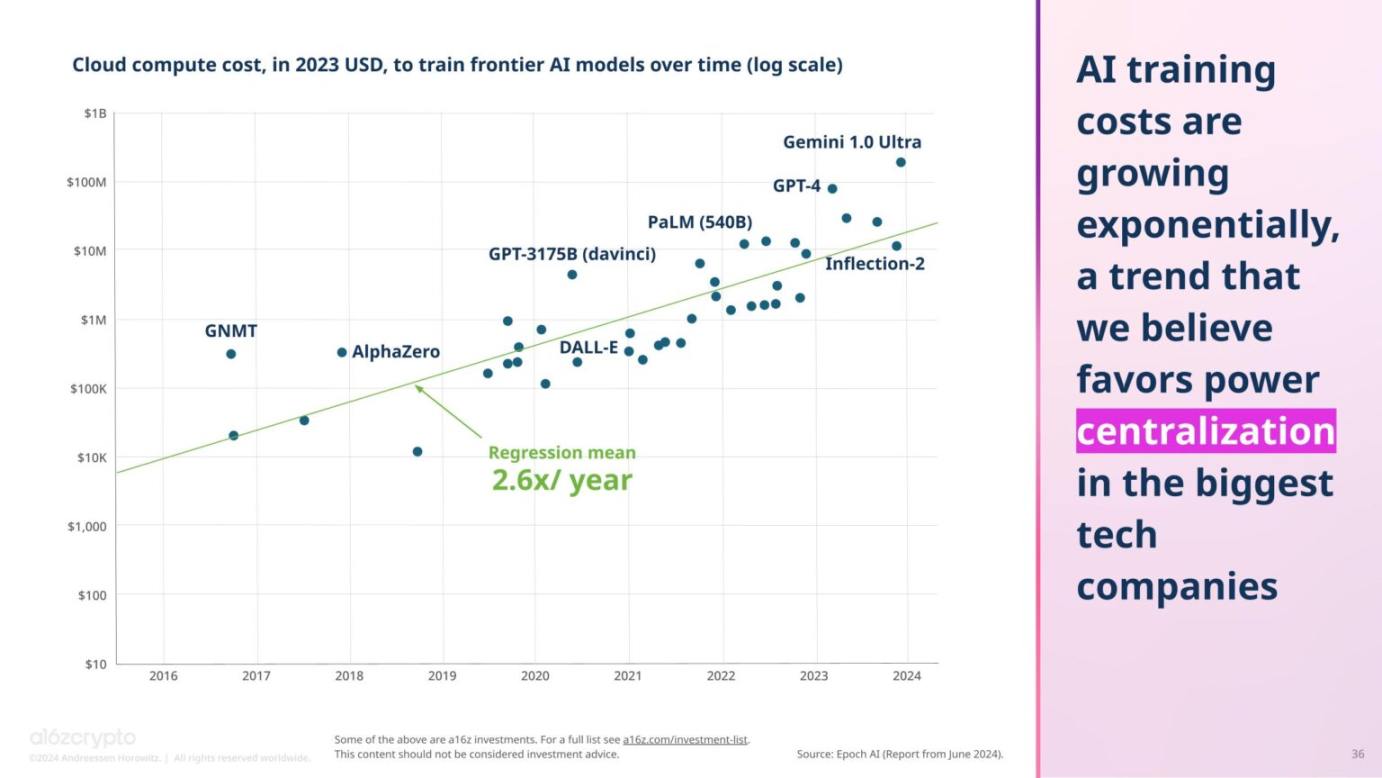 鉴于前沿 AI 模型的训练成本过去十年以每年四倍的速度增长,我们认为 AI 可能导致互联网权力日益集中。若不加以制约,或许只有大型科技公司有资源训练最新模型。